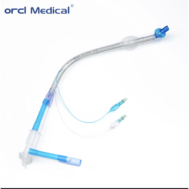 O tubo endotraqueal de luz dupla é constituído por uma articulação cónica de 15 mm, um cateter de luz dupla, três vias, uma válvula de controlo de inflação traqueal, uma válvula de controlo de inflação bronquial, um tubo de inflação,Balão de indicador traqueal, balão de indicador bronquial, manguito traqueal, manguito bronquial, fio de aço, tubo de sucção, etc.